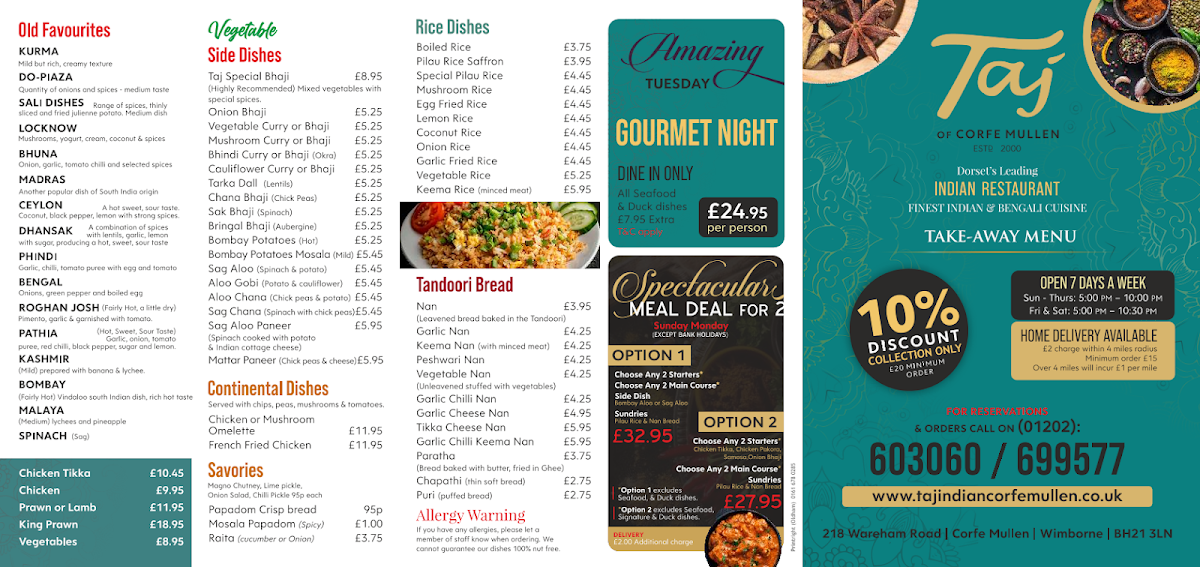 Join the community of food lovers who consider Taj the beating heart of Corfe Mullen dining.